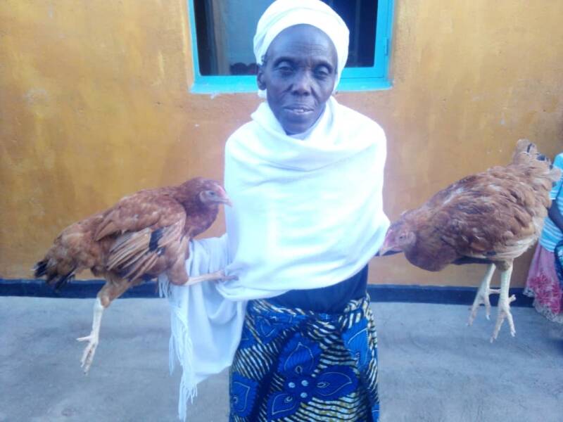 Maria en oma Clesence zijn heel blij en dankbaar voor de kippen. Het is aandoenlijk om hun vreugde te zien, dit kom je elders veel minder tegen.