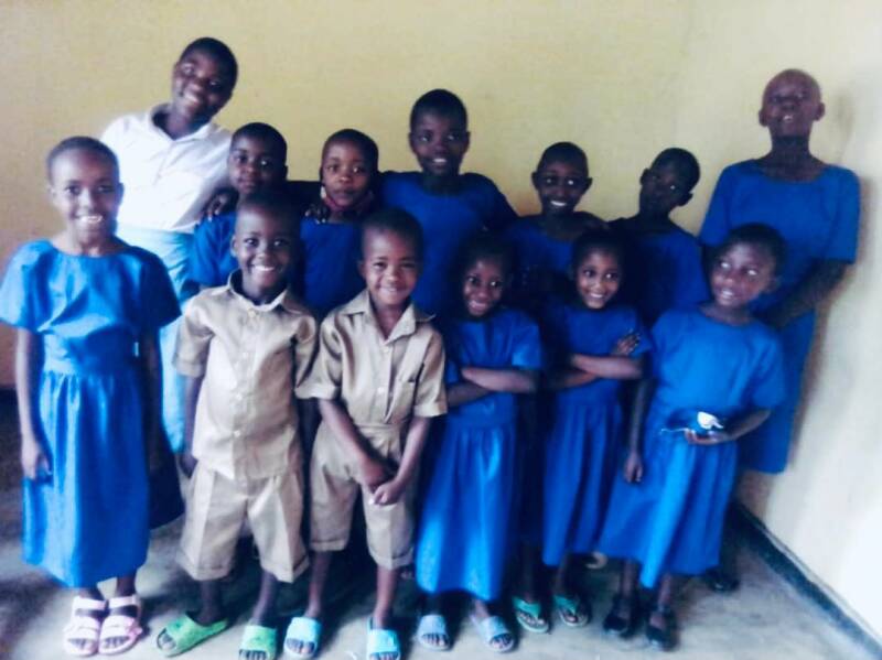 Zoals je op de foto’s kan zien zijn het voor de meisjes blauwe uniformen en voor de jongens bruin. Eugenie (meisjes linksboven op de groepfoto) heeft een ander uniform gekregen omdat zij naar de middelbare school gaat.