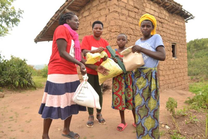 Clemance en Francine kwamen natuurlijk niet met lege handen. Zij hadden rijst, maismeel, zeep en suiker. Ook in Rwanda worden deze goederen duurder. De prijs van een pak suiker is met 50 procent gestegen. Als je bedenkt dat een gemiddelde dagloon ongeveer 0,50 eurocent is dan is het haast niet te doen. Kortom niet al te beste tijden voor gezinnen. Van te voren was ons bezoek niet aangekondigd dus het was een verrassing. De goederen zijn dankbaar in ontvangst genomen. Samen met Juf zijn de schoolresultaten besproken. Er waren goede cijfers te zien en Iedereen doet zijn of haar best!, en dat geeft voor de toekomst hoop! Juf Clemance is niet de juf van de kinderen zelf, Clemance werkt op een andere school.